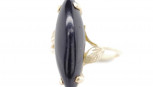 Lot Description:Vintage onyx and 14ct yellow gold navette ring