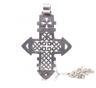 Egyptian silver marks. Approx size 75x50mm, chain length 62cm, weight 32 grams -