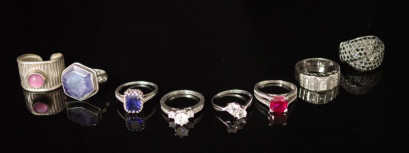 Lot Description:Seven silver & gemstone rings