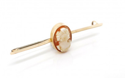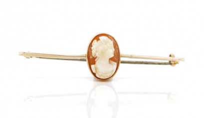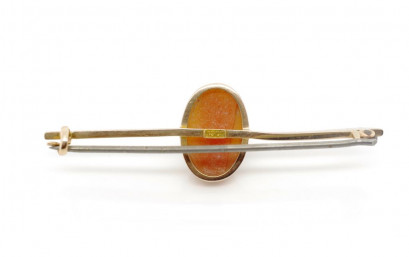 Lot Description:Antique carved cameo and 15ct yellow gold brooch