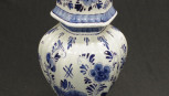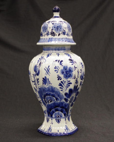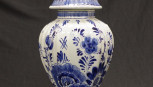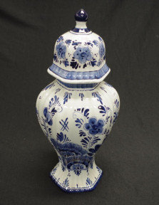 Lot Description:Large Delft ceramic blue & white lidded vase