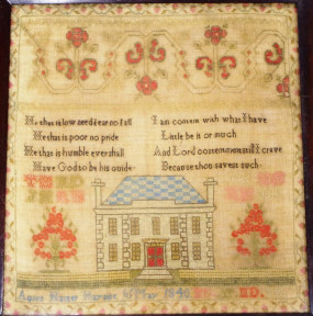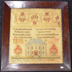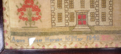 embroidered by Agnes 16th May 1840, 53cm X50.5cm approx (including frame), details verso. -