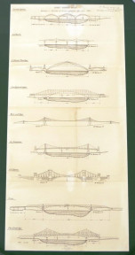proposed designs depicting"SYDNEY HARBOUR BRIDGE Appendix 1. - Sketches of Designs submitted. 30th Sept. 1900 ...... .Photo-lithographed by W. A. Gullick, Government Printer, Sydney, N.S.W.", dated 1903 upper right, mounted in later frames, 70cm x 30cm approx (images), 98cm x 61cm approx (frames), originated from "SYDNEY HARBOUR BRIDGE BOARD Report on Designs and Tenders submitted in connection with the Proposed Bridge over Sydney Harbour to connect Sydney with North Sydney PLANS" -