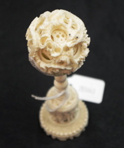 Lot Description:Antique Oriental ivory puzzle ball & stand, Circa 1920's