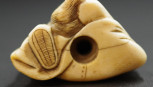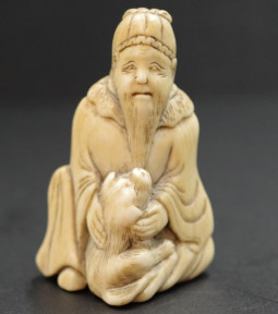 Lot Description:Antique Japanese ivory seated sage & dog netsuke, Circa 1920's
