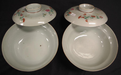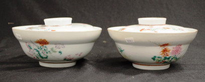 Lot Description:Two Chinese polychrome ceramic lidded bowls