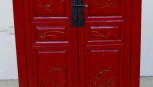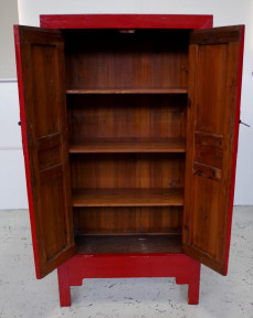 with carved panel doors and inside shelves, wax seal to rear, 85cm wide, 40cm deep, 163cm high approx -