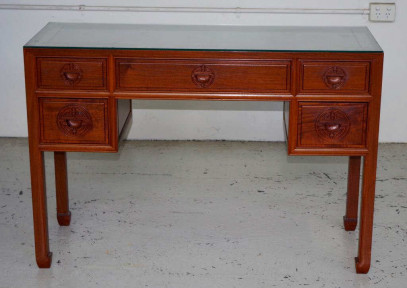 with glass cover top, 114cm wide, 46cm deep, 77cm high approx -