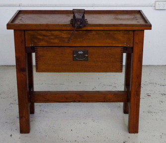 with drawer and vice, 92cm x 46cm, 90cm high approx -