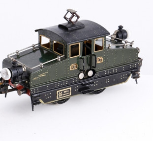 1 0-4-0 Overhead Electric Locomotive, 3-Rail. Finished in green with PO and running number E1 to cab sides. Condition is generally excellent. L21cm (2I) -
