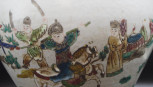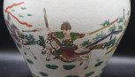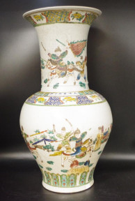 with hand painted polychrome decoration depicting warriors, 27cm diameter, 54.5cm high approx -