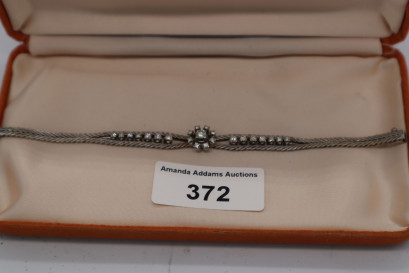 Lot #372 - Vintage 18 ct white gold and diamond bracelet featuring centre round brilliant cut diamond