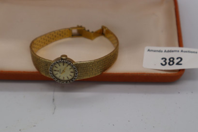 Lot Description:Omega Automatic ladies vintage 14 ct gold and diamond watch and band