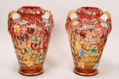 Lot Description:Pair of 19th Century Moser Twin Handled Vases