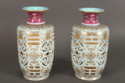 Lot Description:Pair of Chinese Reticulated Porcelain Vases