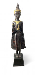 Lot Description:Thai Carved Wooden Standing Buddha, Late 19/20th Century