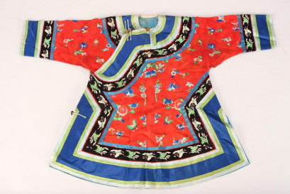 Lot Description:Chinese Embroidered Red Damask Jacket