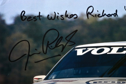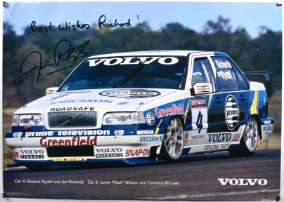 Lot Description:RICHARDS: A Volvo racing poster with picture of Super Tourers Volvo 850 R as raced by Jim Richards and Rickard Rydell
