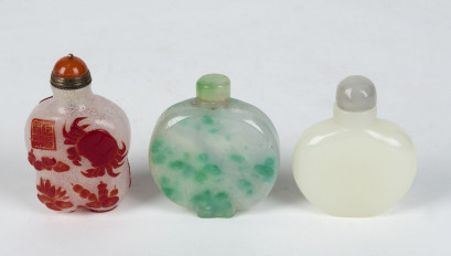 Lot Description:Three Chinese jade and glass scent bottles, 19th/20th century