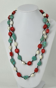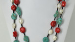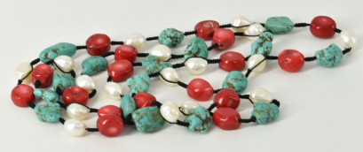 Lot Description:A Dyed Coral Turquoise And Baroque Pearl Necklace