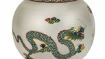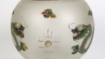 Lot Description:An impressive Chinese glass lantern shade with hand-painted enamel dragon decoration, early 20th century