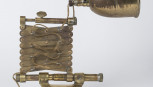 Lot Description:A vintage brass expanding industrial light with wall mount, circa 1930