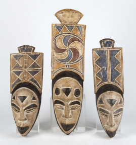 Lot Description:Three tribal masks, carved wood with polychrome finish, Igbo tribe, Nigeria