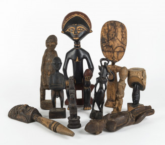 Lot Description:Ten assorted tribal sculptures including Fanti fertility dolls, figural statues etc, carved wood, African origin