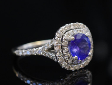 Lot Description:Tanzanite and diamond set 18ct white gold ring