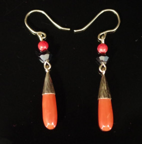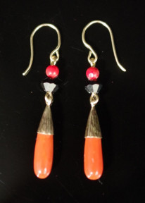 Lot Description:Italian coral and 9ct yellow gold drop earrings