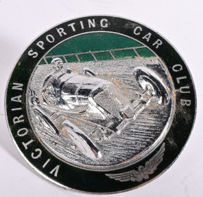 'L.P.AI N.S' stamped to handle, with 'VICTORIAN SPORTING CAR CLUB' badge, chromium nickel with enamel inserts, with mounting -