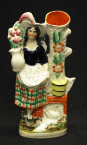standing figure supporting spill vase, (height 25cm approx).
