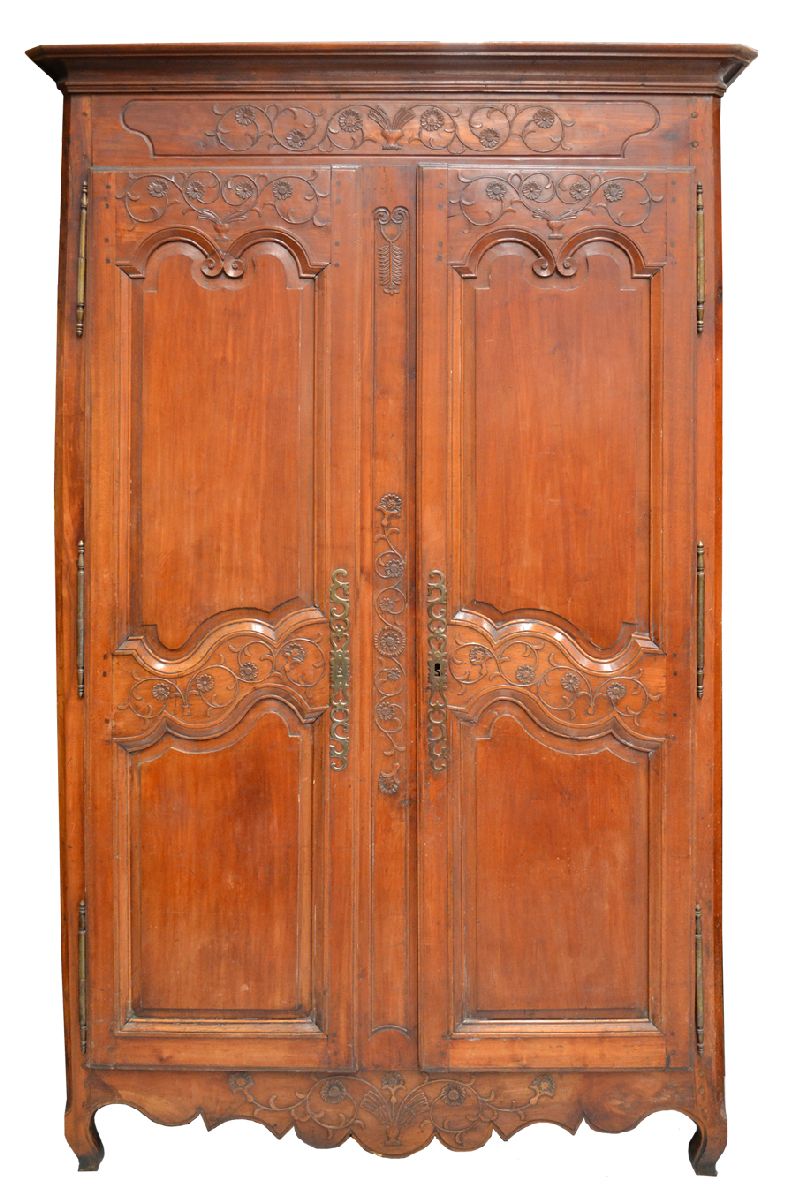 wood armoire, carved in low relief with urns & flowers, H 237 cm x W 138 cm -