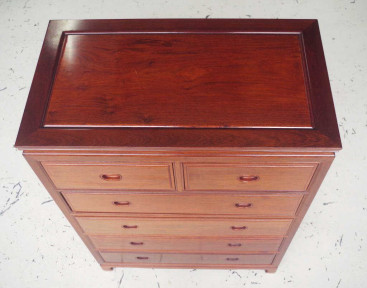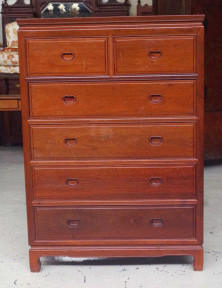 with 2 short and 3 long drawers, 86cm wide, 48cm deep, 122cm high approx -