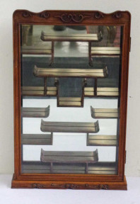with mirror back and stepped shelves, 53cm wide, 11.5cm deep, 81cm high approx -