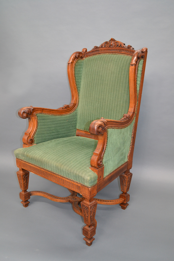 Lot Description:Antique French carved walnut high