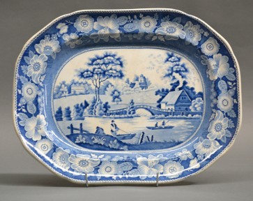 earthenware platter. Depicting an North European landscape. 42 x 33 cm. -