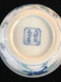 Lot Description:A doucai enamelled 'chicken' cup, 20th century