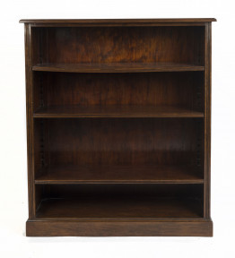 Lot Description:An Australian stained Kauri pine open library bookcase with three adjustable shelves, circa 1890