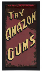 Lot Description:“TRY AMAZON GUMS” antique point of sale advertising mirror, late 19th century