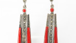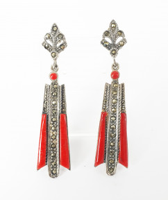 Lot Description:A Pair of Art Deco Silver Coral and Marcasite Earrings