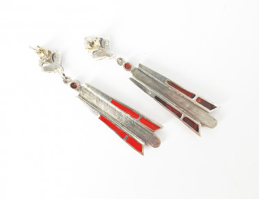 Lot #111 - A Pair of Art Deco Silver Coral and Marcasite Earrings