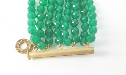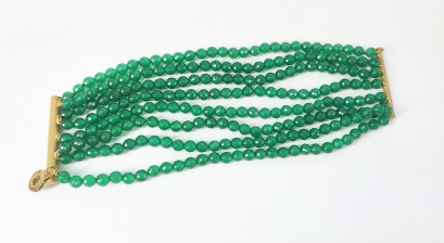 Lot Description:A Jan Logan Dyed Chalcedony Multi-Strand Bracelet