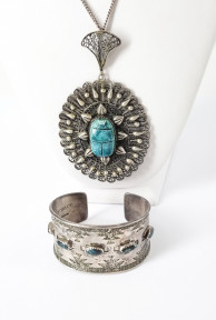 together with a silver 800 scarab necklace. Weight (all in) 80g. -