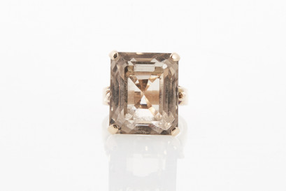 18ct rose gold with step cut smoky quartz, stamped '18K' (A/F)