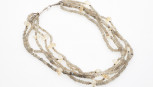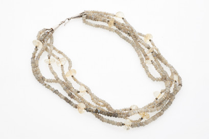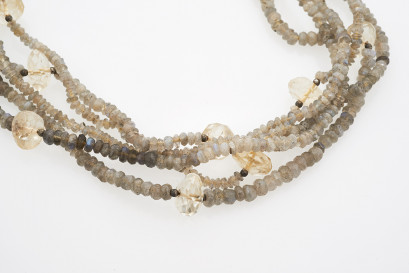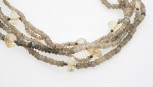 five strands of labradorite and citrine rondelle, with silver beads and hook clasp