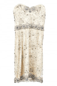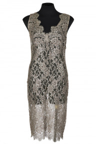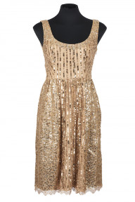 taupe lace and sequins, together with cream and silver beads, strapless, mini length, together with rose gold with brown sequins, all labelled 'Collette Dinnigan Made in Australia' (3)