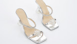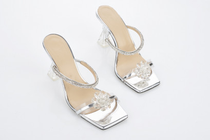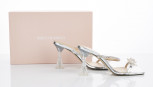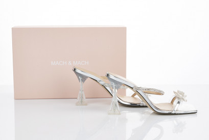 with Flower silver leather straps with crystals, clear heel, embossed 'Mach & Mach made in Italy', very good condition, minor wear to sole