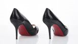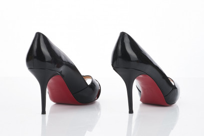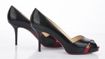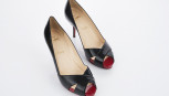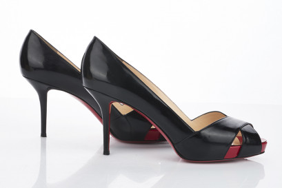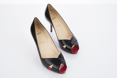 black leather platform, red signature sole, stamped 'Christian Louboutin Made in Italy' -