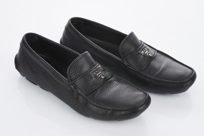 black calf leather with silver tone logo 'Prada Milano', stamped 'Prada Made in Italy', excellent condition